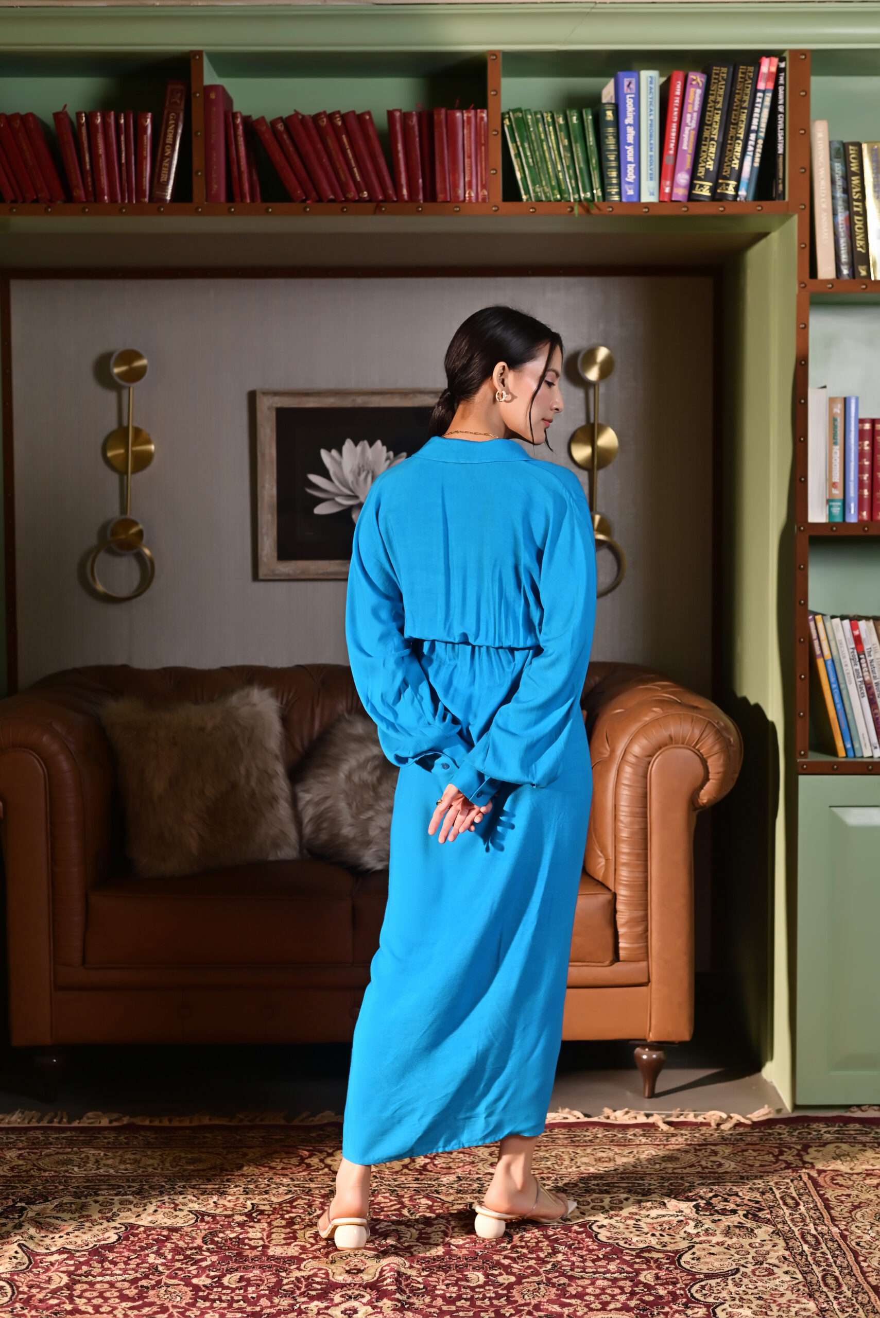 First, I’d like to start by appreciating how beautifully you’ve crafted the Blue Wrap Shirt. I’m genuinely in love with the garment’s softness and how effortless it feels to wear.